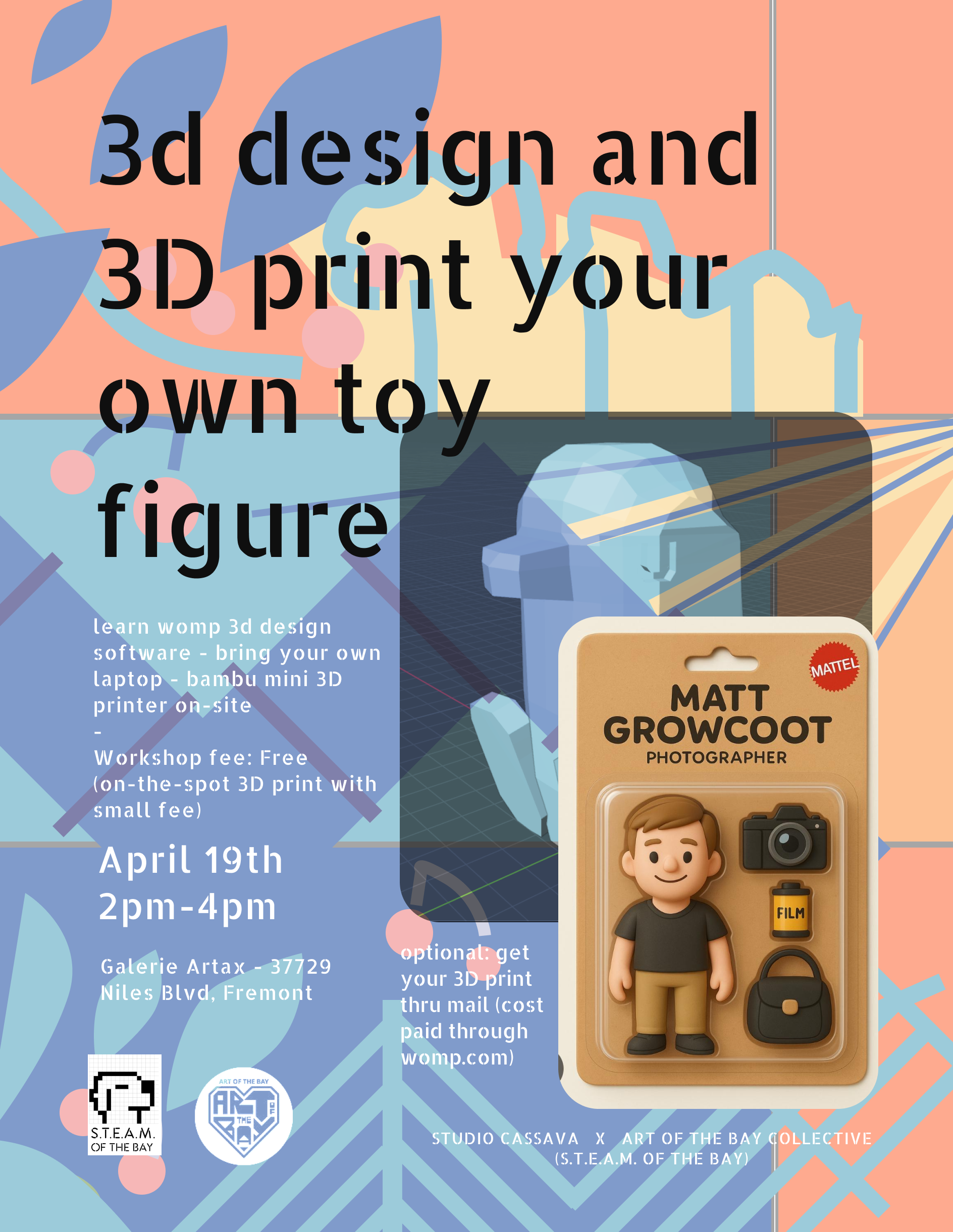 (2025) - At Cassa Jam in Fremont, CA, we hosted 3D design and 3D printing workshops for a class of adults and kids. We taught Womp, a 3D design software, and showcased a Bambu mini 3D printer.