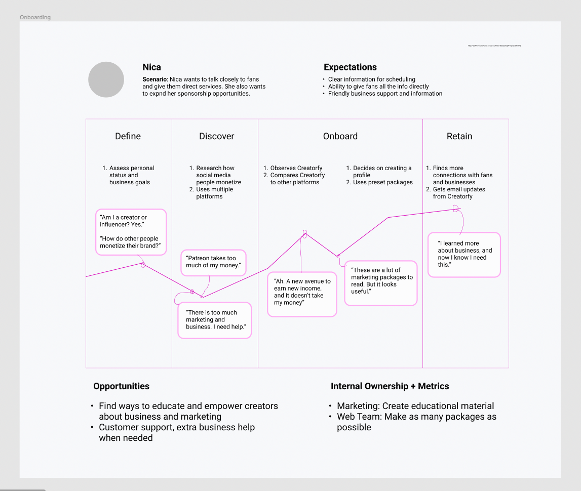 I interviewed 4 creators in qualitative studies and made journey maps, which influenced my designs. The final product focuses on: Can we make fan-creator interaction more accessible and meaningful? And enable creators to grow in new opportunities?